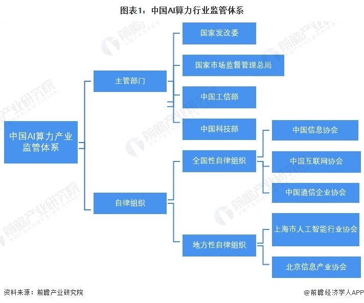 我國AI算力產(chǎn)業(yè)監(jiān)管體系建設(shè)有待完善。目前,我國AI算力產(chǎn)業(yè)以國家發(fā)改委、科技部等政府部門監(jiān)管為主,以中國信息協(xié)會(huì)等全國性行業(yè)協(xié)會(huì)及上海市人工智能行業(yè)協(xié)會(huì)等地區(qū)性行業(yè)協(xié)會(huì)自律監(jiān)管為輔。