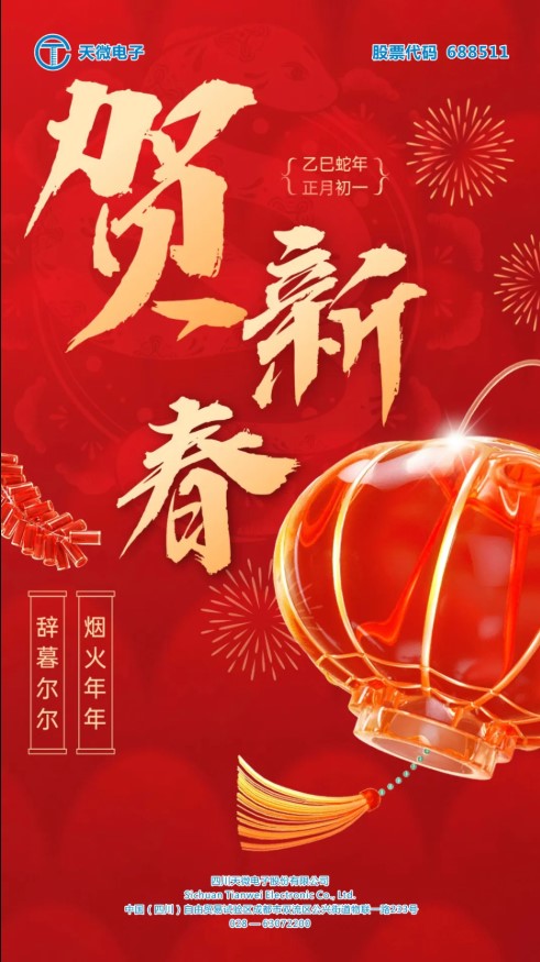 煙火年年、辭暮爾爾。值此新春佳節(jié)來臨之際,四川天微電子股份有限公司向各級(jí)領(lǐng)導(dǎo)、各界朋友、廣大客戶及全體員工,致以最誠摯的問候和最美好的新春祝福!
